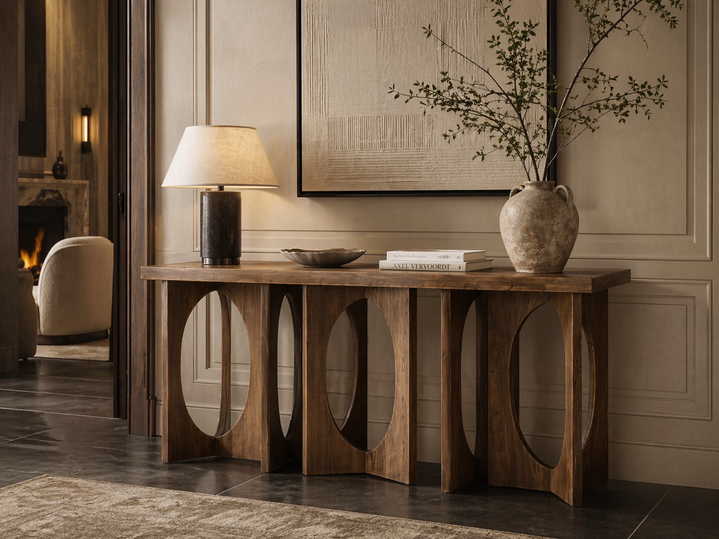 Drewniana konsola do wnętrz, w których liczy się styl i funkcjonalność