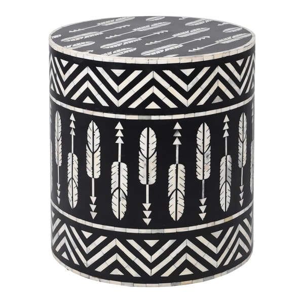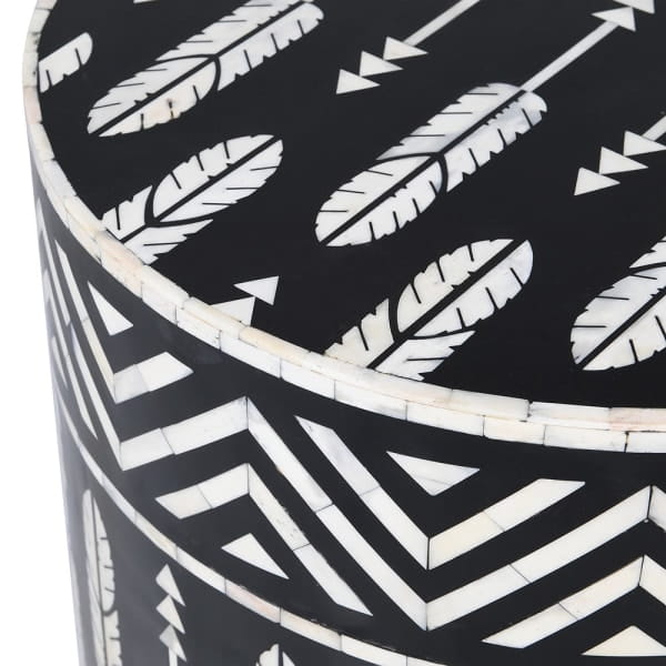 Okrągły stolik pomocniczy Belize z inkrustacją z kości w czerni i bieli