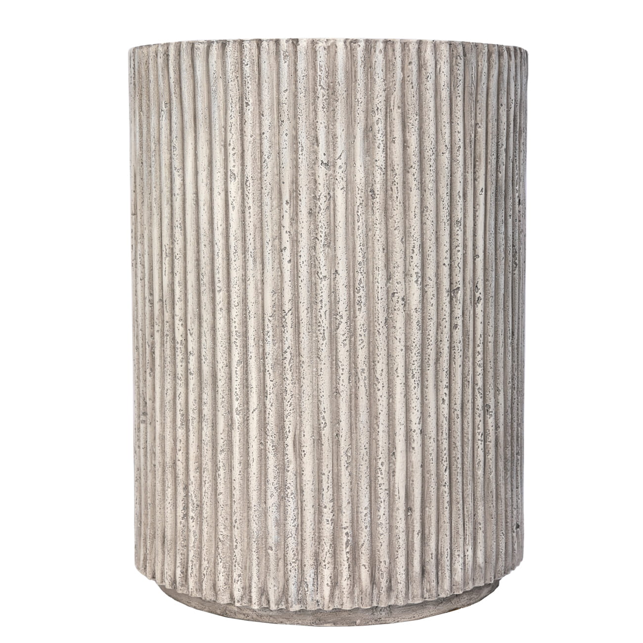 Cylindryczna forma stolika bocznego została ozdobiona pionowym żłobieniem, które nadaje całości rytmu, głębi i wyrazistej struktury. Dzięki temu stolik pomocniczy Stone nie tylko pełni funkcję praktyczną, ale także staje się rzeźbiarskim akcentem architektonicznym we wnętrzu, wprowadzającym nutę nowoczesnej elegancji. Stolik boczny Stone to mebel wszechstronny – sprawdzi się w salonie, a także w oranżerii czy na tarasie pod zadaszeniem.