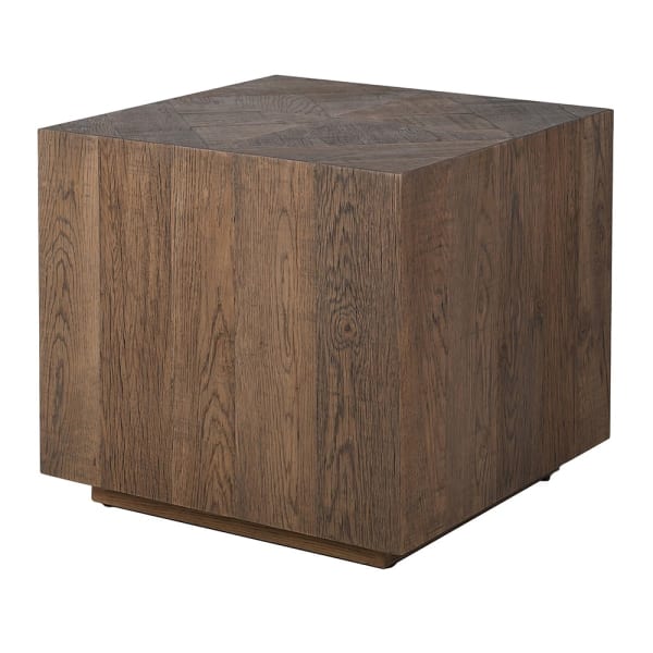 Kwadratowa forma i dekoracyjny fornir ułożony w symetryczny wzór na blacie nadają meblowi nowoczesnego, niemal rzeźbiarskiego charakteru. Idealny do wnętrz loftowych, minimalistycznych, japandi czy modern rustic. Masywna, stabilna bryła pełni zarówno funkcję użytkową, jak i dekoracyjną – może służyć jako stolik kawowy, stolik boczny lub element ekspozycyjny w salonie, holu czy przestrzeni komercyjnej.