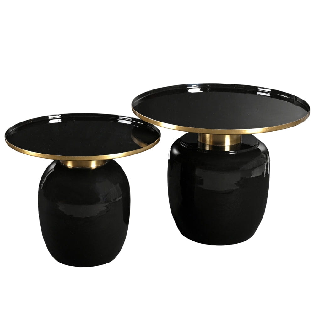 Komplet dwóch stolików bocznych Penna w odcieniu czerni, która w efektowny sposób została przełamana przez dodatek złotego koloru. Ten zestaw stolików do salonu będzie eleganckim, a jednocześnie nowoczesnym dodatkiem wystroju wnętrza. Stoliki Penna są idealnym elementem wykończeniowym dla każdej przestrzeni mieszkalnej. Dzięki swojej eleganckiej czarnej metalowej konstrukcji, ozdobnym złotym detalom oraz nowoczesnemu designowi, te stoliki dodadzą nuty elegancji i wyrafinowania każdemu pomieszczeniu. W mgnieniu oka odmienią wygląd salonu, biura, sypialni, a nawet przedpokoju. Czarno-złota kolorystyka daje nieograniczone możliwości tworzenia unikatowych wnętrz.