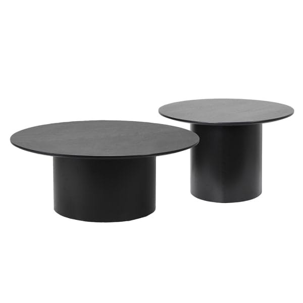 Dwa stoliki kawowe True Black 90 i 60 cm średnicy komplet dwa stoliki czarne żelazne okrągłe
