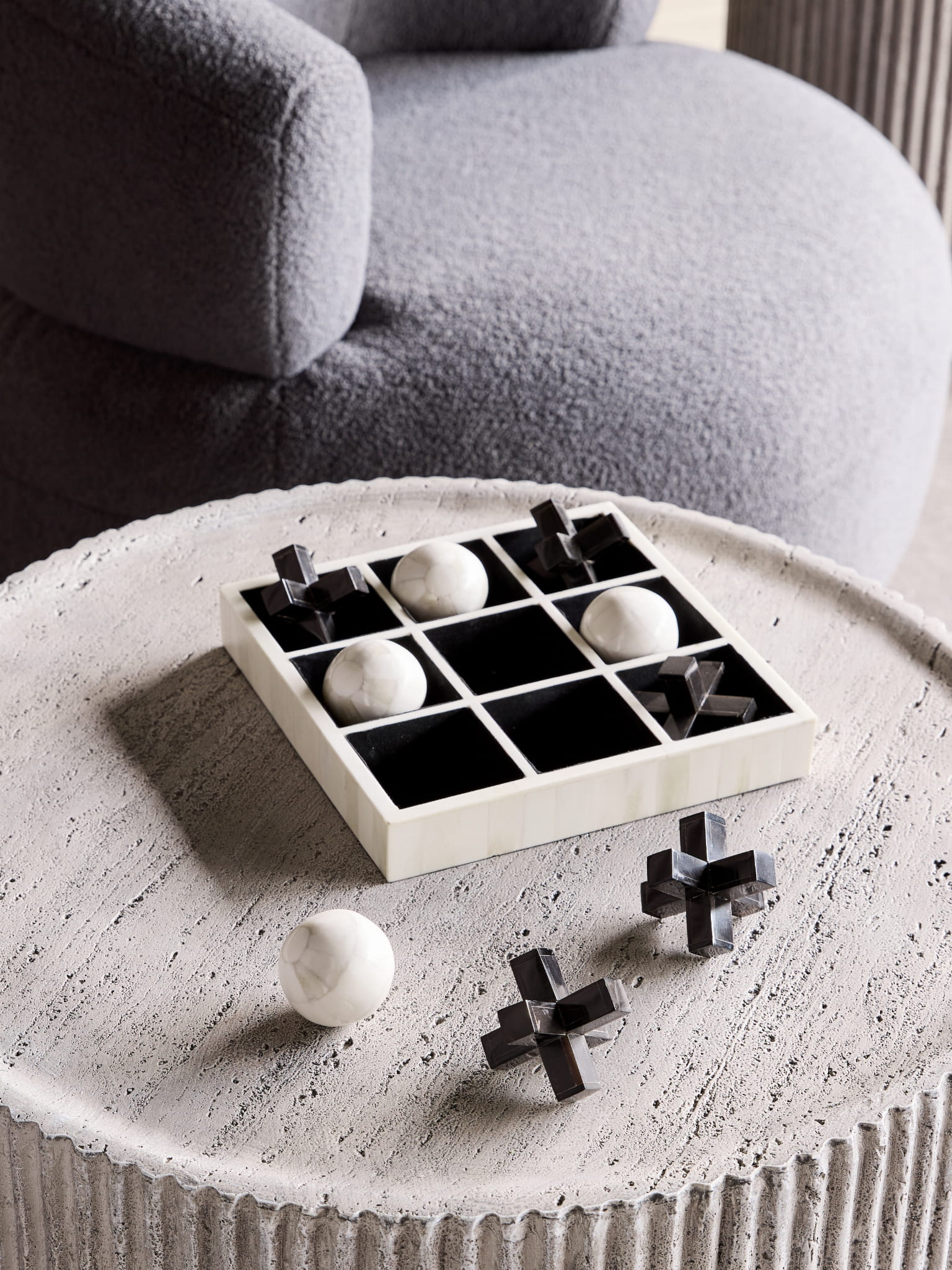 Cylindryczna forma stolika kawowego została ozdobiona pionowym żłobieniem, które nadaje całości rytmu, głębi i wyrazistej struktury. Dzięki temu stolik Stone nie tylko pełni funkcję praktyczną, ale także staje się rzeźbiarskim akcentem architektonicznym we wnętrzu, wprowadzającym nutę nowoczesnej elegancji. Stolik Stone to mebel wszechstronny – sprawdzi się w salonie jako centralny stolik kawowy, a także w oranżerii czy na tarasie pod zadaszeniem.