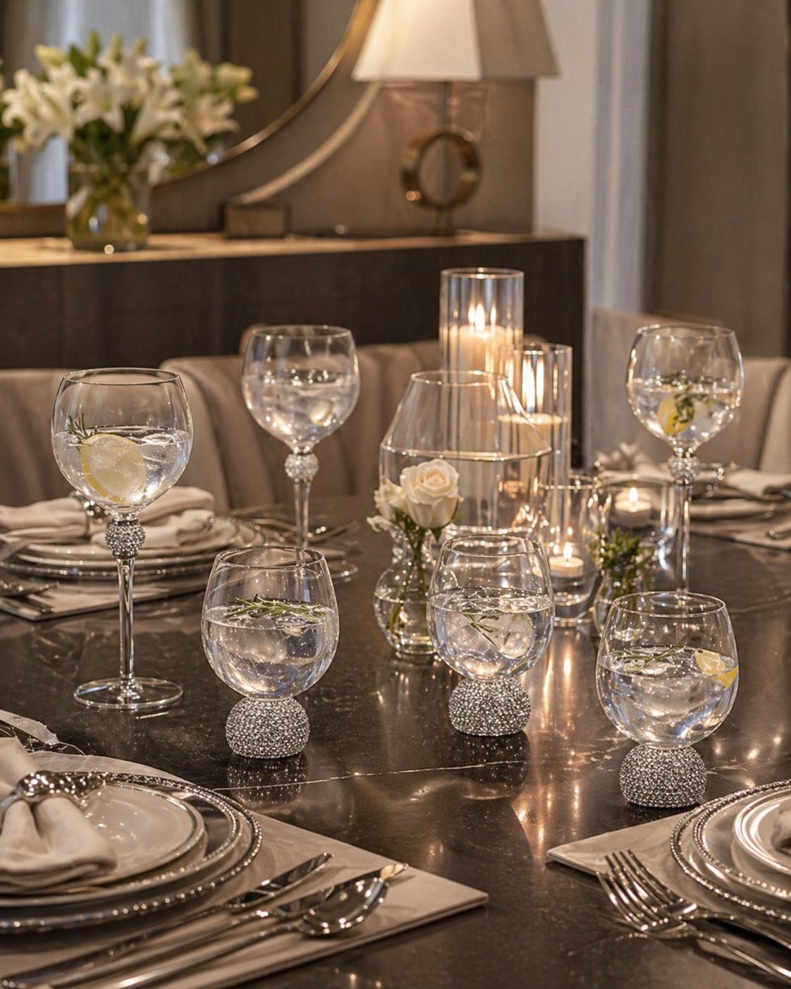 Szklanki Boscobel łączą praktyczne zastosowanie z dekoracyjnym wyglądem. Srebrne wykończenie dobrze pasuje do aranżacji glamour, modern classic oraz eleganckich nakryć stołu. Komplet sprawdzi się podczas domowych przyjęć, uroczystości, spotkań z przyjaciółmi oraz jako efektowny element wyposażenia barku.