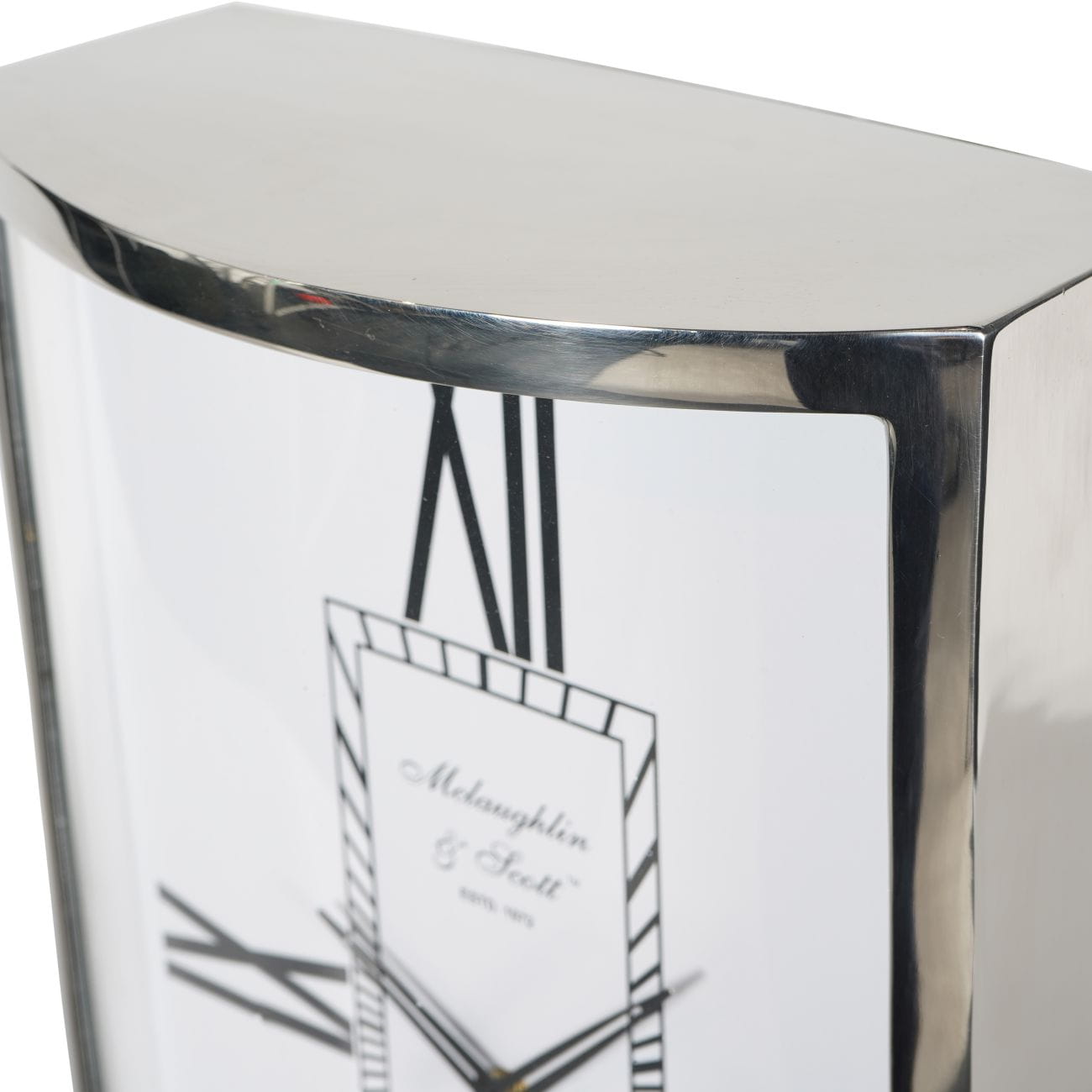 Luksusowy zegar nablatowy w bardzo dużym rozmiarze, wykonany ze stali nierdzewnej posiada białą tarczę z rzymskimi cyframi. Całość prezentuje się niezwykle efektownie i elegancko. Ten piękny zegar nablatowy będzie się majestatycznie prezentować w salonie w stylu nowojorskim, glamour czy klasycznym. Wysoka jakość wykonania oraz oryginalny design sprawiają, że ten dekoracyjny zegar będzie stanowił prawdziwą ozdobę wnętrza.